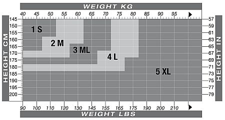 Per scegliere la taglia più appropriata si consiglia di fare riferimento alla tabella in cui le varie taglie vengono definite a seconda del rapporto fra altezza in centimetri (HEIGHT CM) e il peso in chilogrammi (WEIGHT KG).