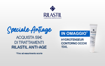 Acquista €59 di prodotti Rilastil Antiage, in regalo Hydrotenseur Contorno Occhi da 15ml! Promo valida fino a esaurimento scorte.