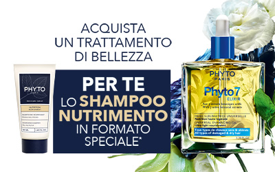 Acquista un prodotto Phyto tra quelli selezionati e ricevi subito in regalo lo Shampoo Nutrimento 50ml! Promo valida fino a esaurimento scorte.